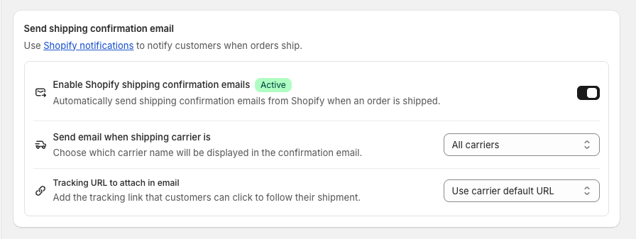 - Find the setting labeled Send shipping confirmation email.