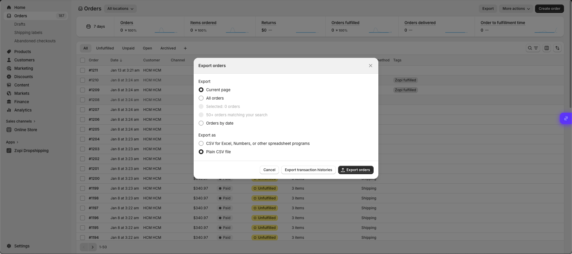 Fulfill orders like normal in Zopi