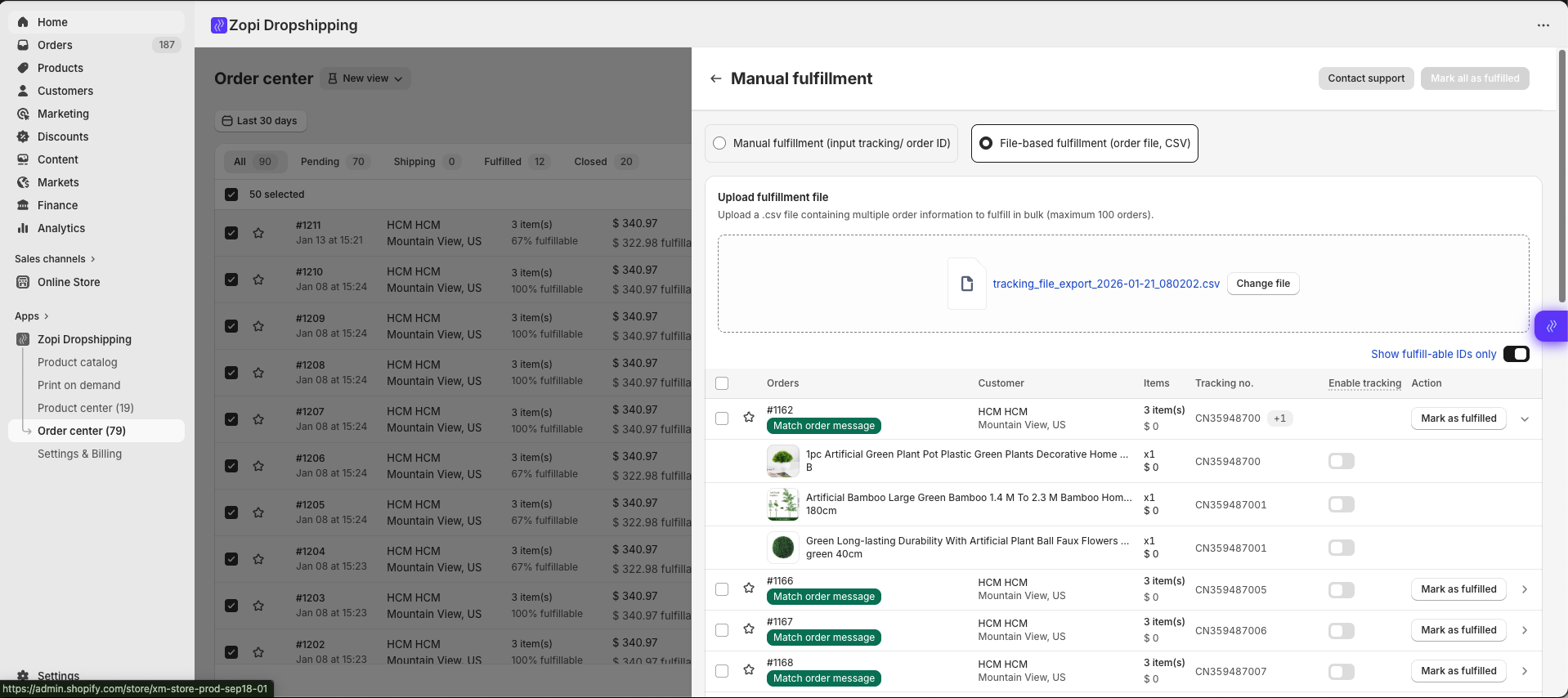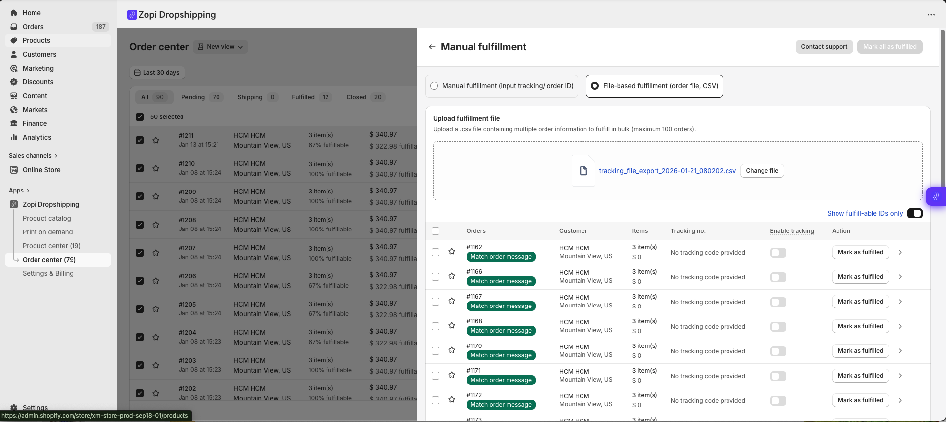 Upload the order file into Zopi so you can manage fulfillment inside Order Center.
