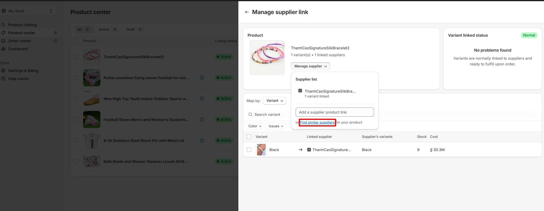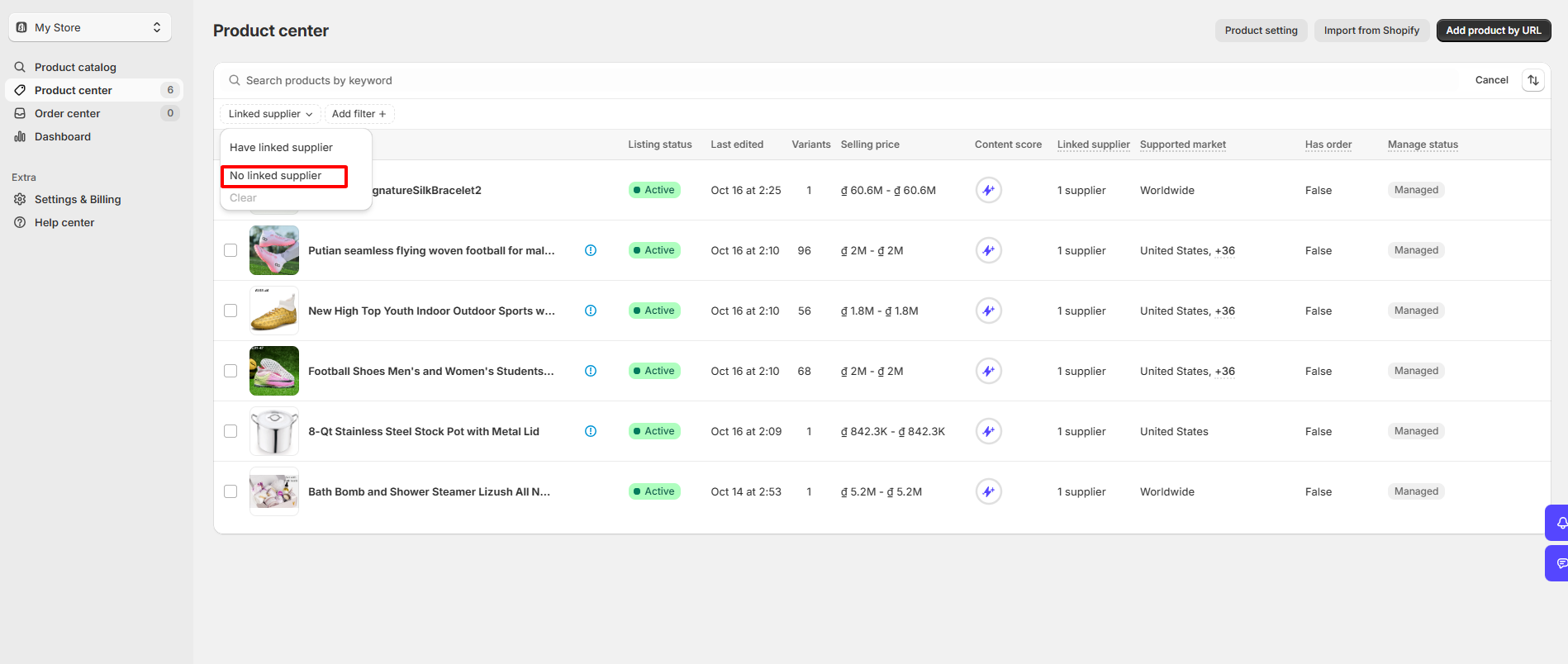 This helps you easily identify which products need to be mapped to a supplier before fulfillment.
