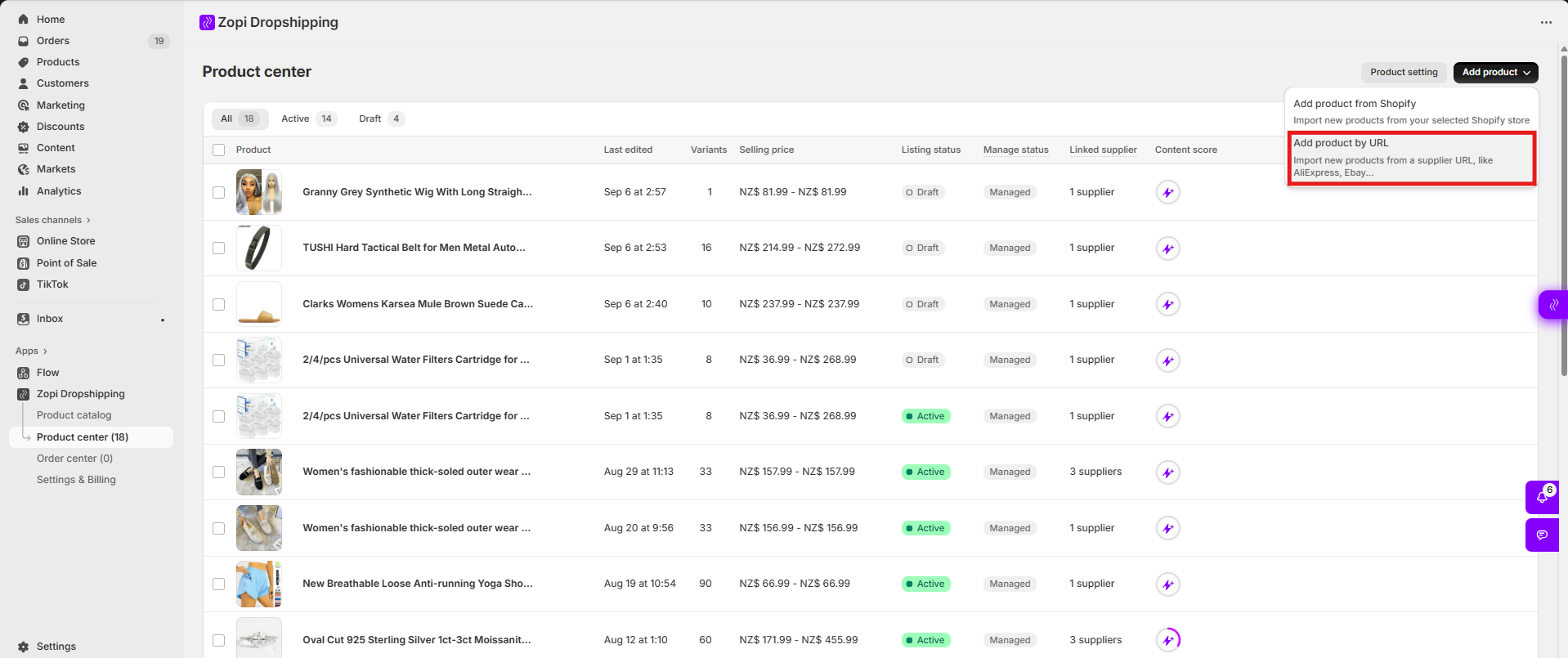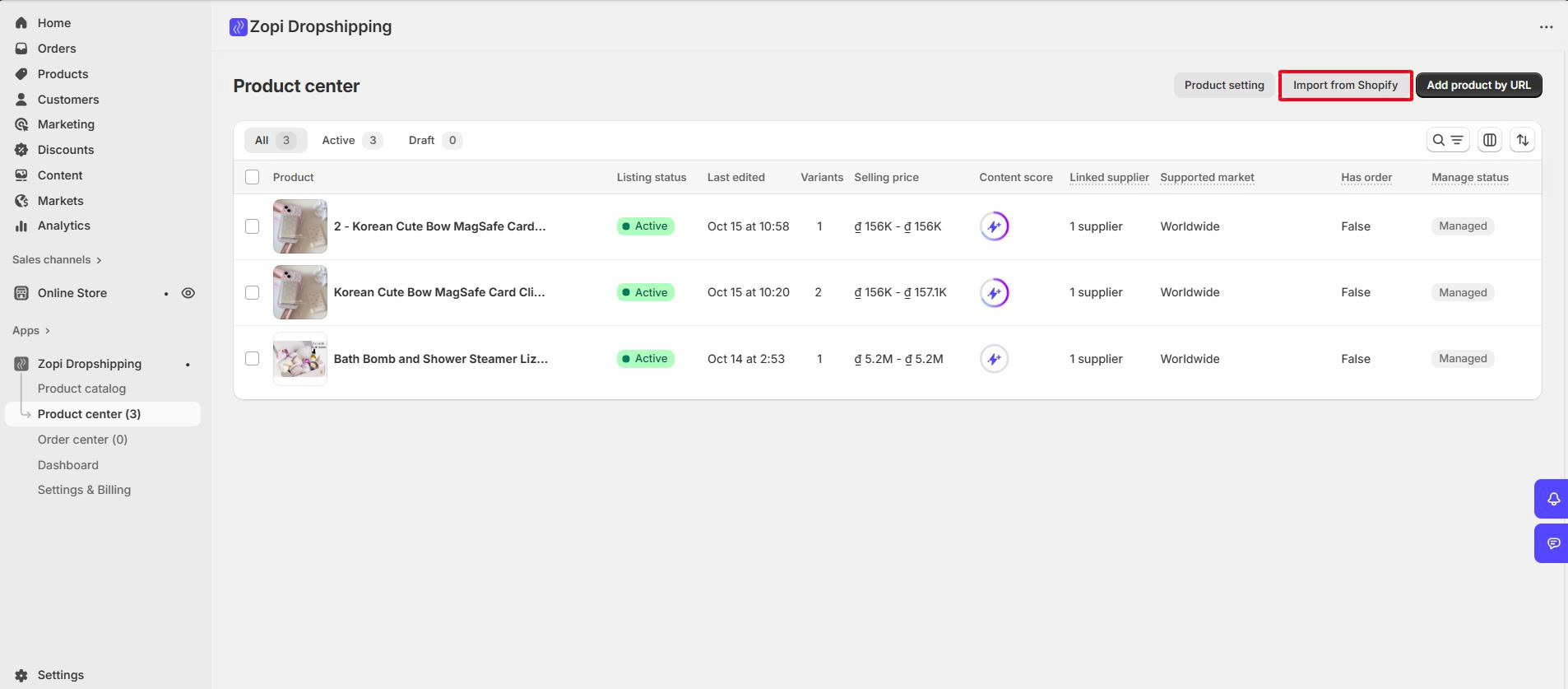 If you already have products in your Shopify store, Zopi allows you to import them into your dashboard. This enables you to manage and fulfill these products directly through Zopi for a smooth dropshipping workflow.