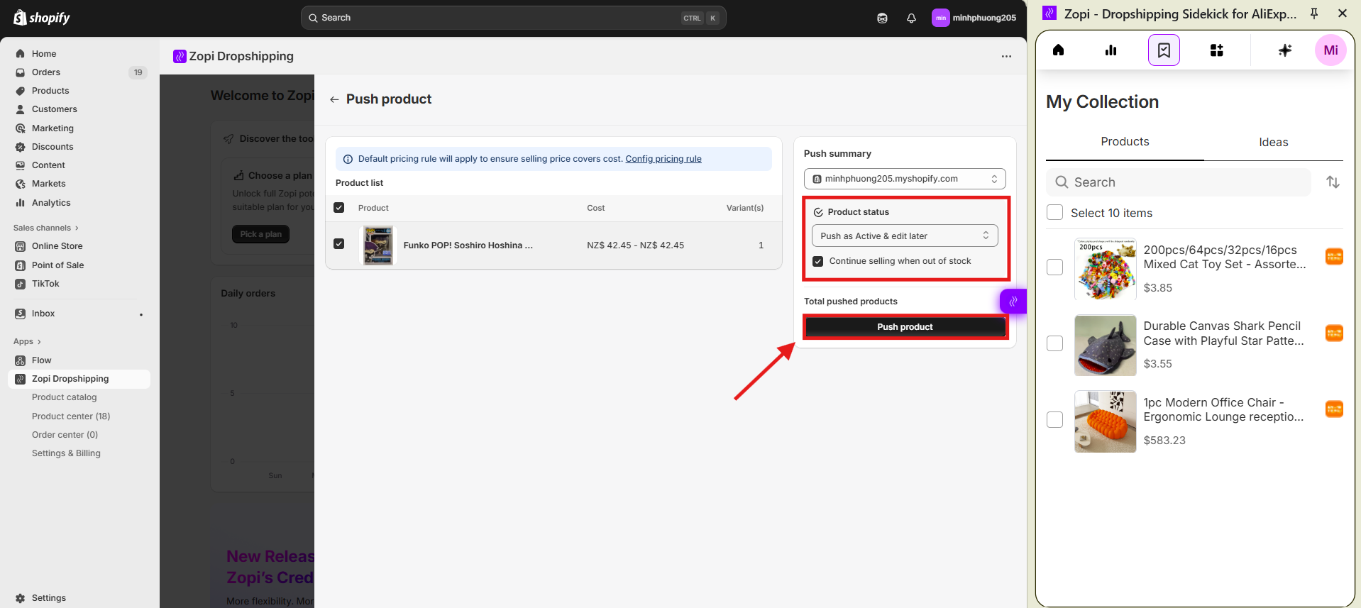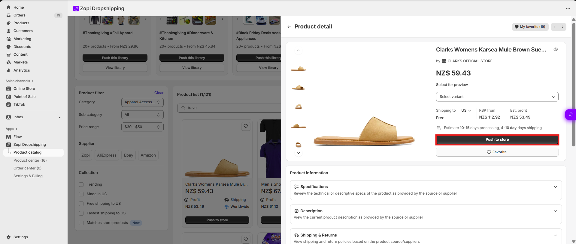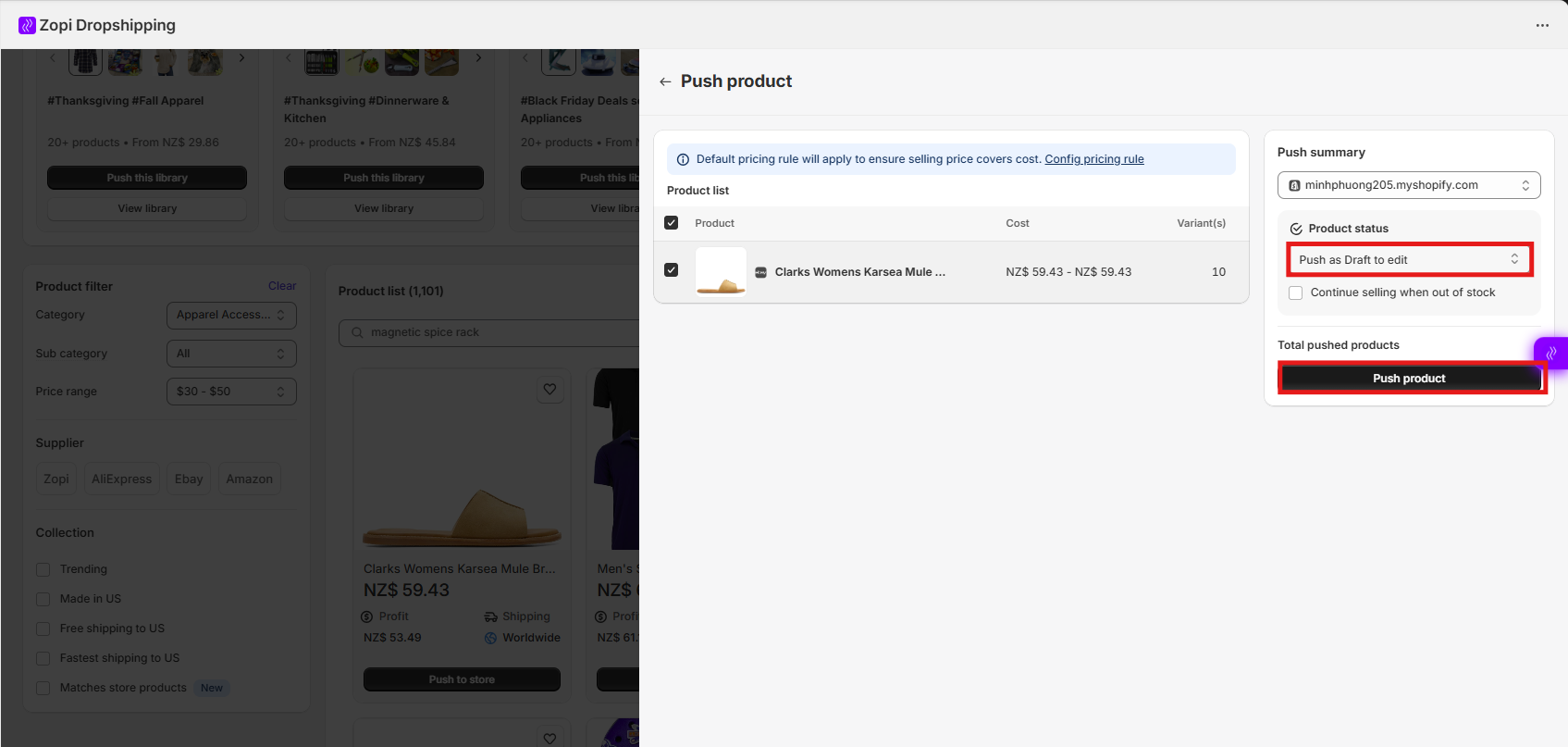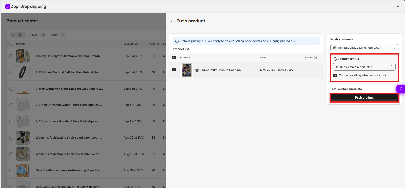 - You will be redirected to Zopi’s dashboard. Review and adjust the product. Click Push to Store again to complete the process.