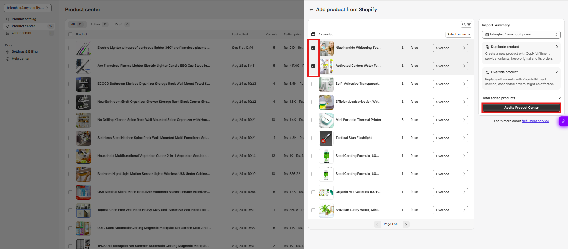 Select the products you want to import. Click Add to Product Center to complete the process.