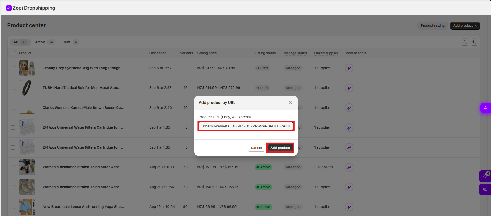 If you already have a product link from AliExpress or eBay, you can paste it directly into Zopi.