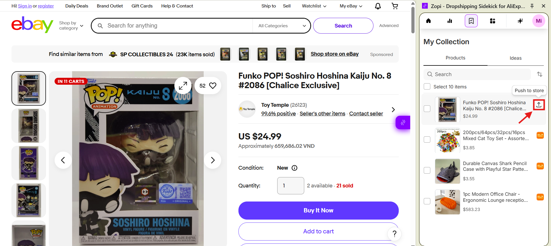 Method 2: Push via Zopi Chrome Extension (Temu, eBay, Amazon)