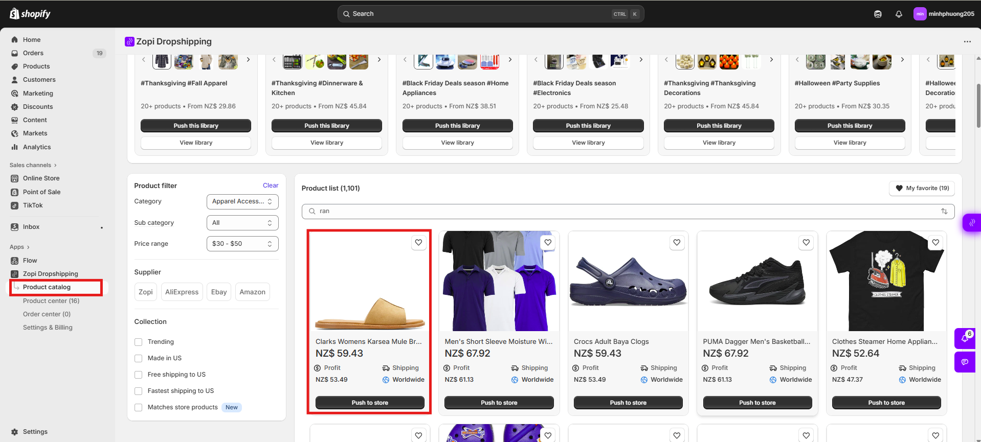 If you want ready-to-sell items, Zopi’s built-in Product Catalog offers a curated list of trending and high-quality products.